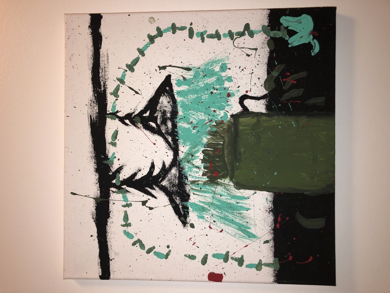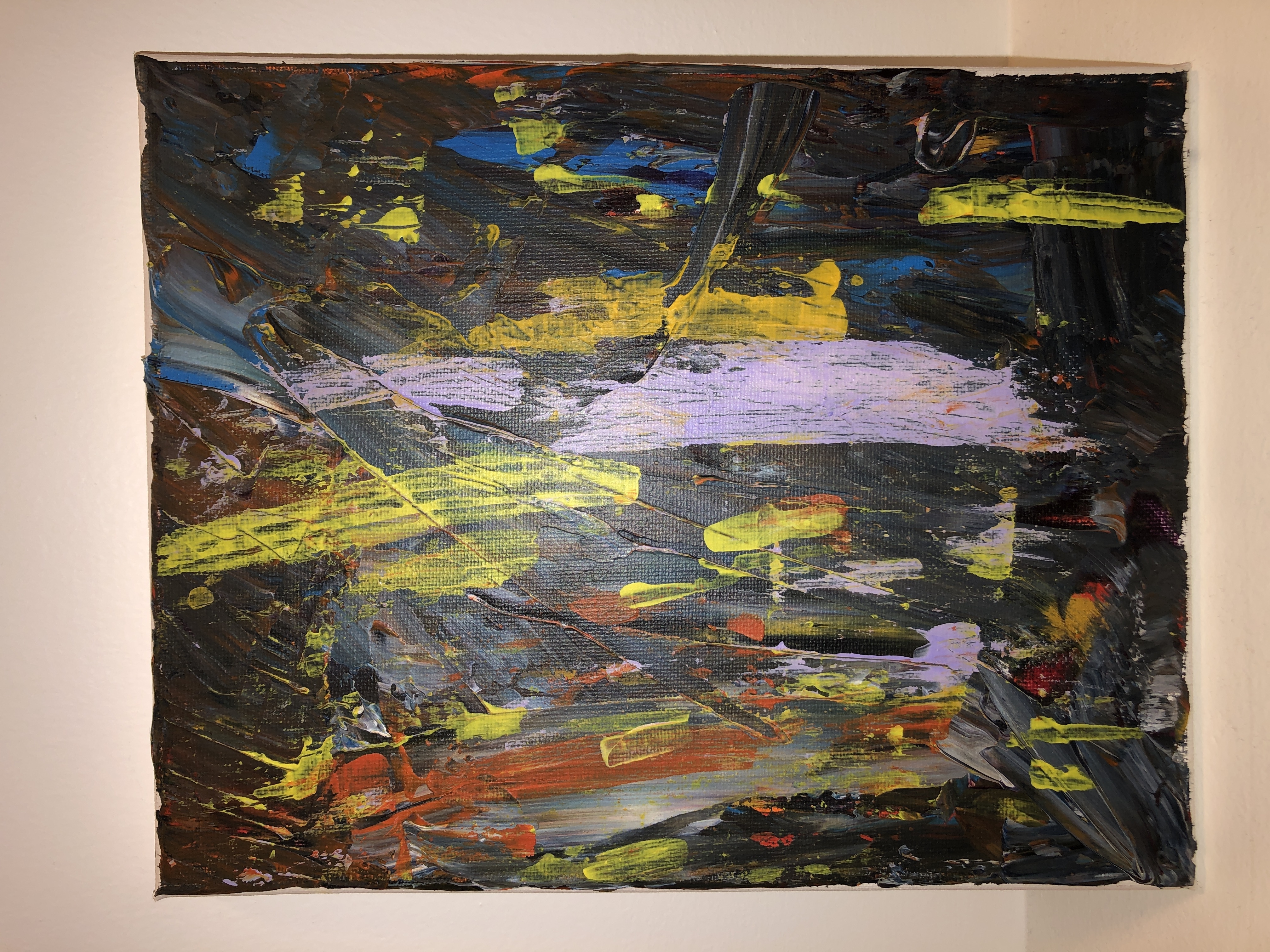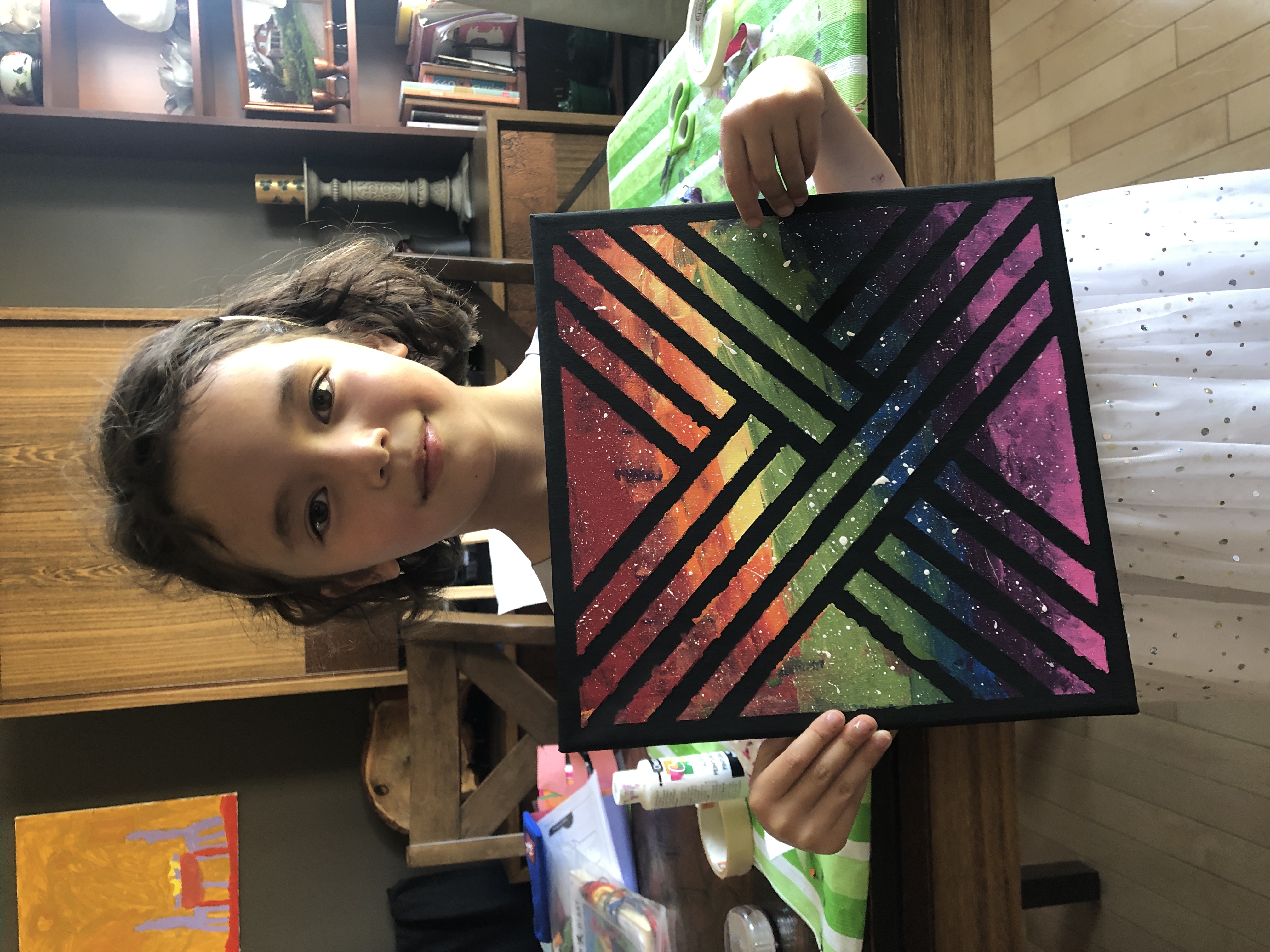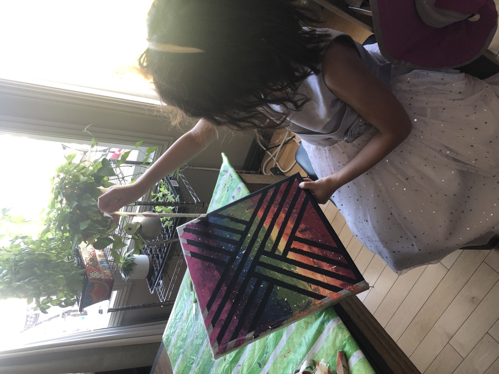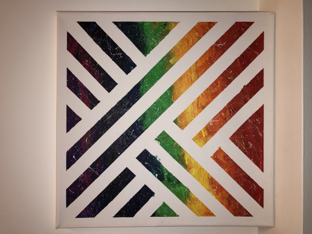 Making Tape stripes - second step is to put patterns of masking tape and begin colouring over them onto the black background. full size