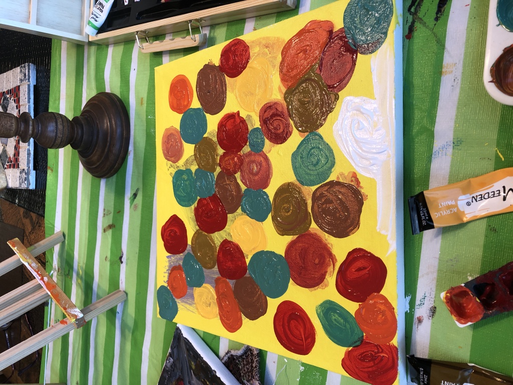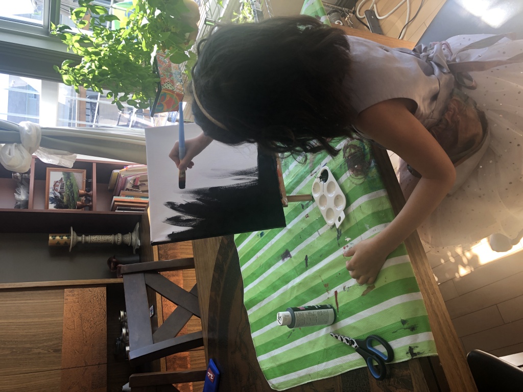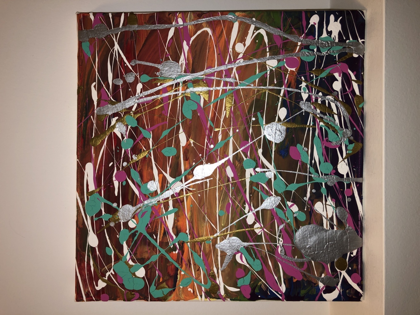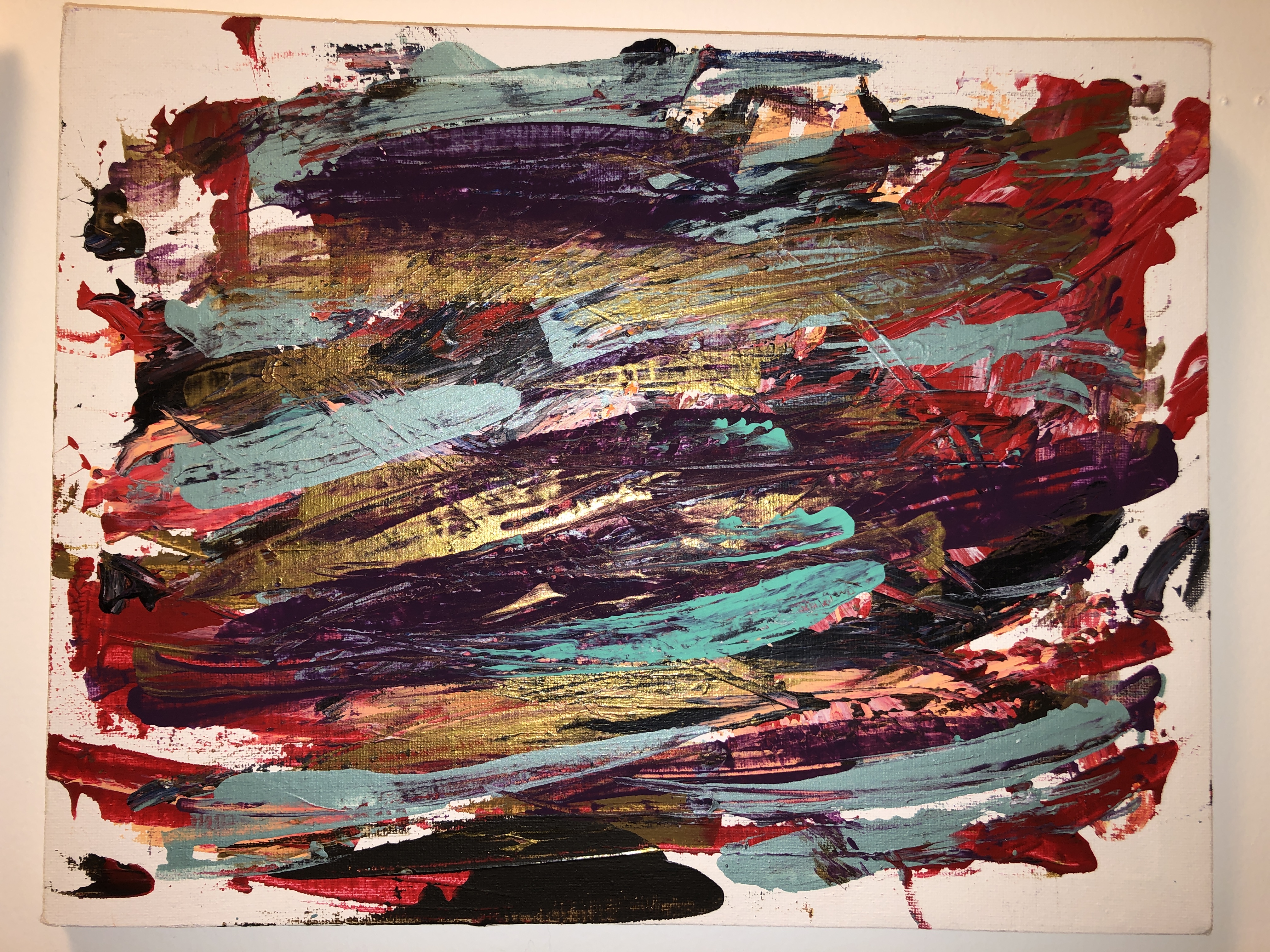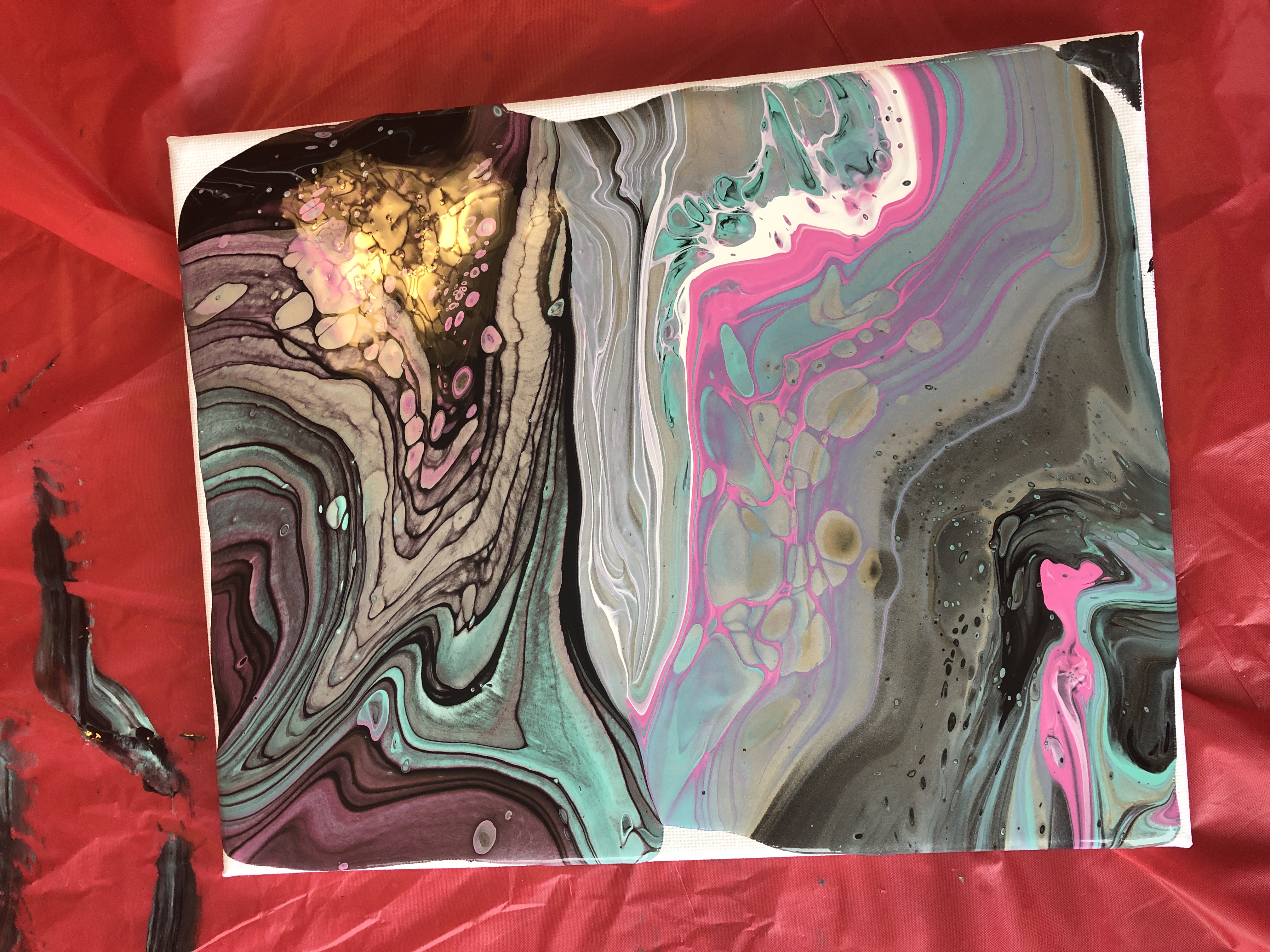 Making Tape stripes - second step is to put patterns of masking tape and begin colouring over them onto the black background. full size