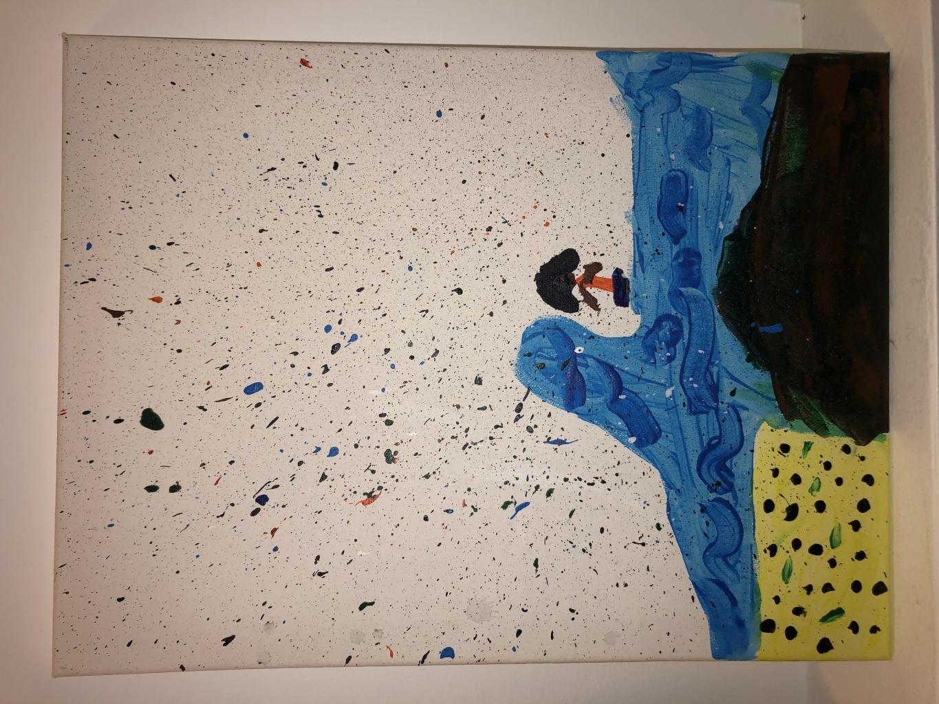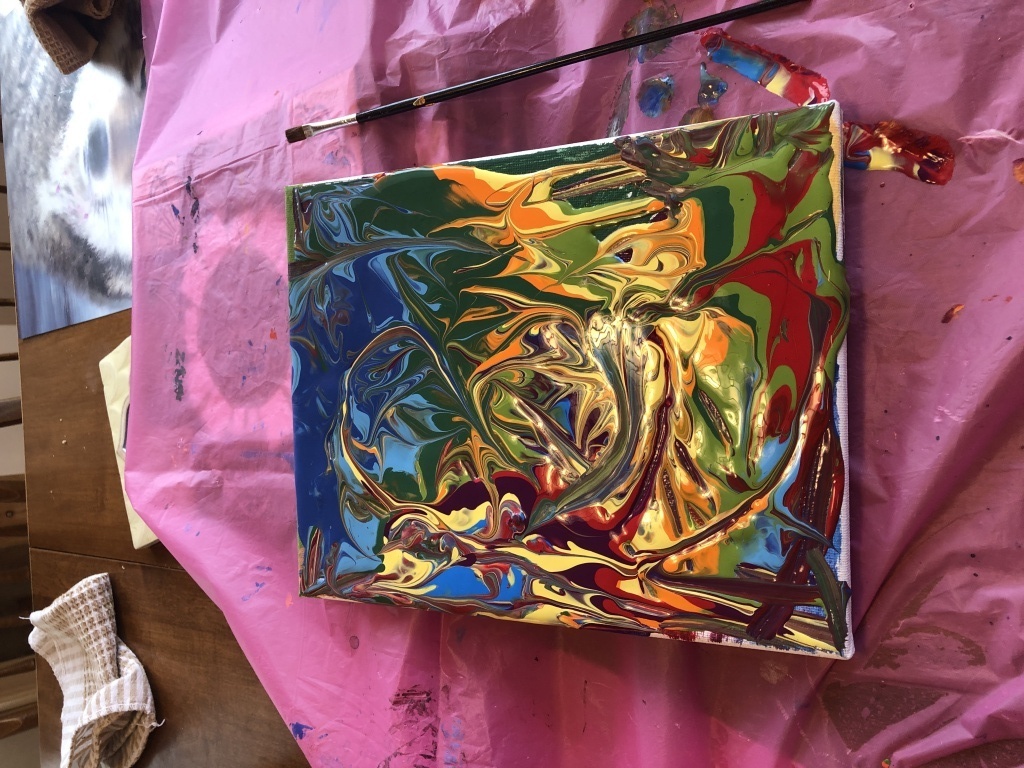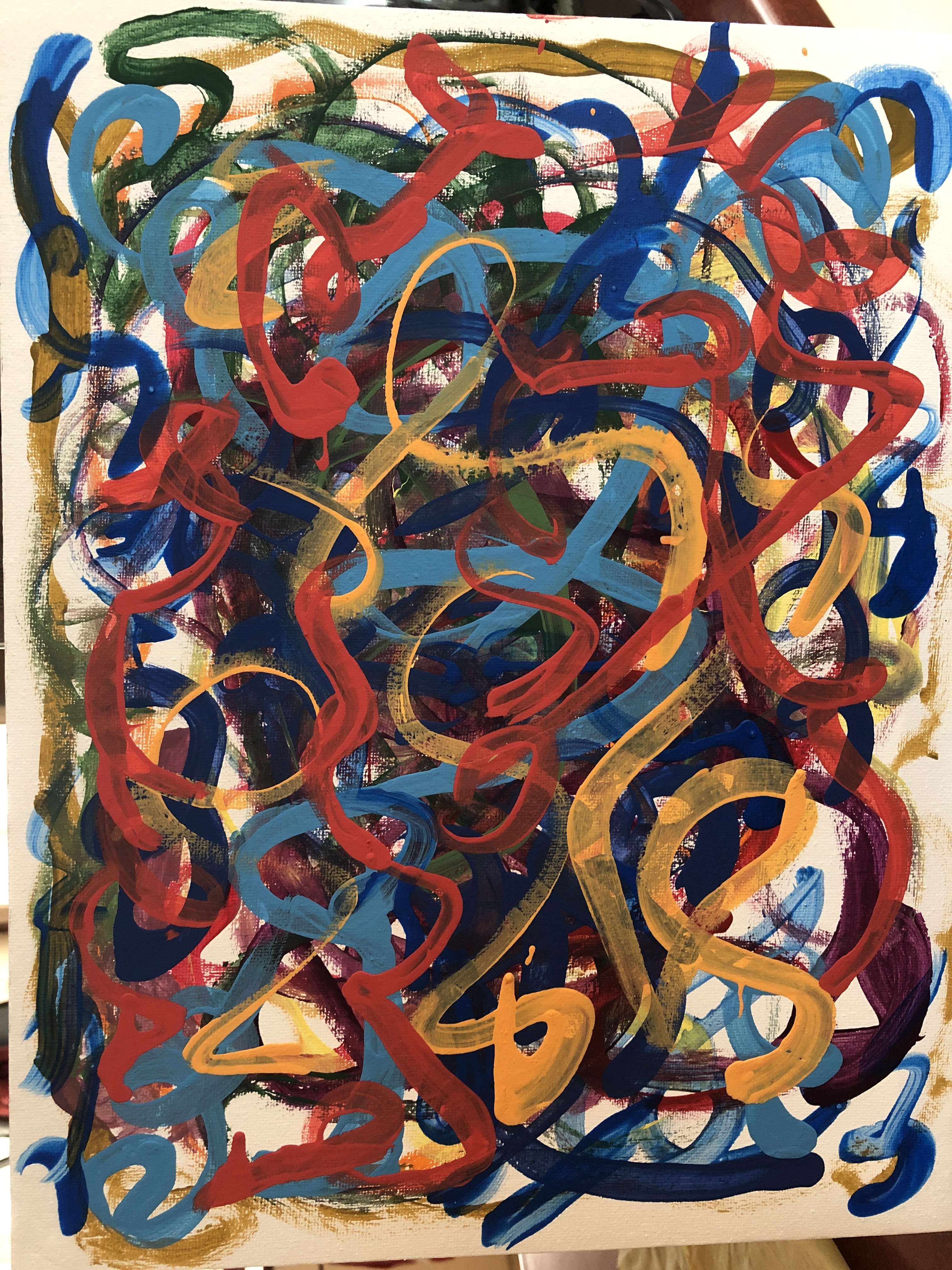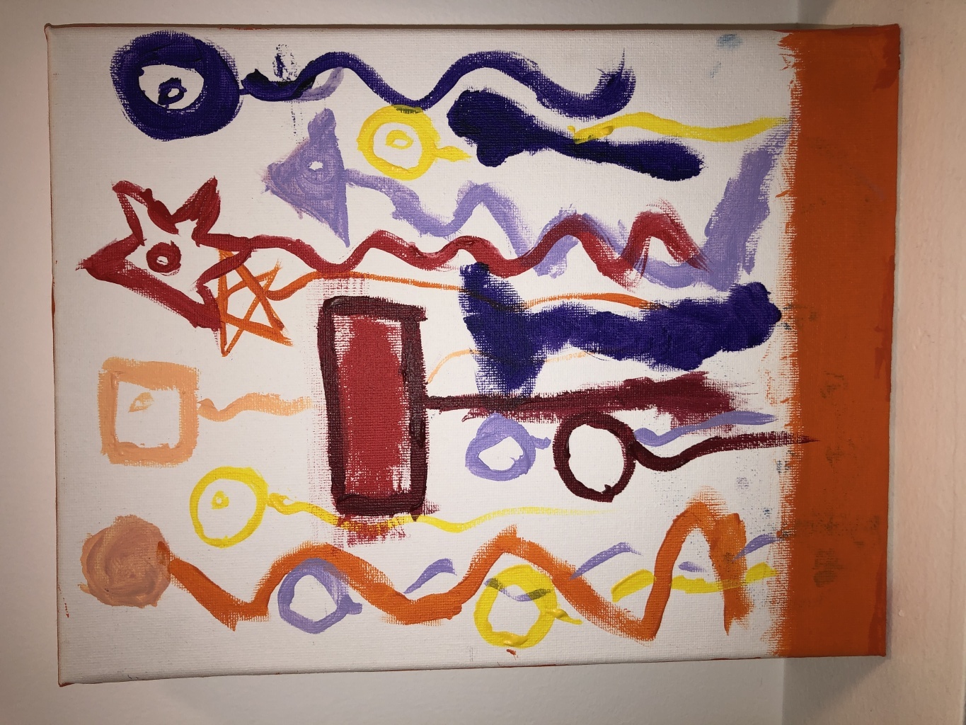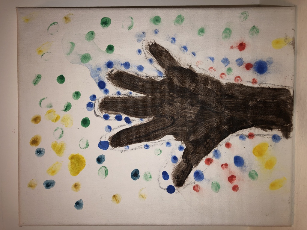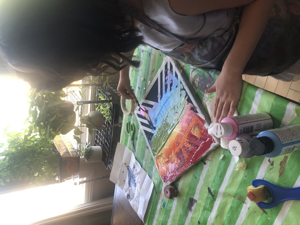 Making Tape stripes - second step is to put patterns of masking tape and begin colouring over them onto the black background. full size