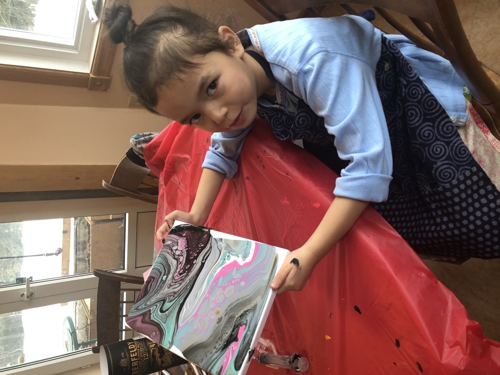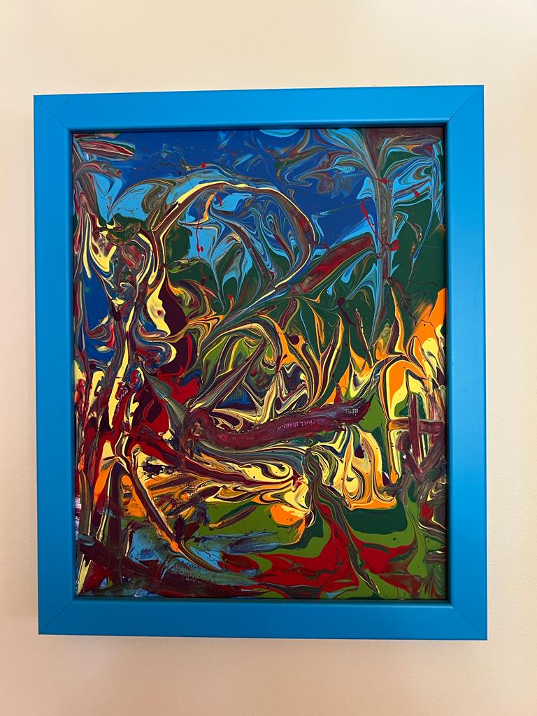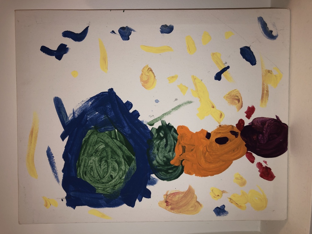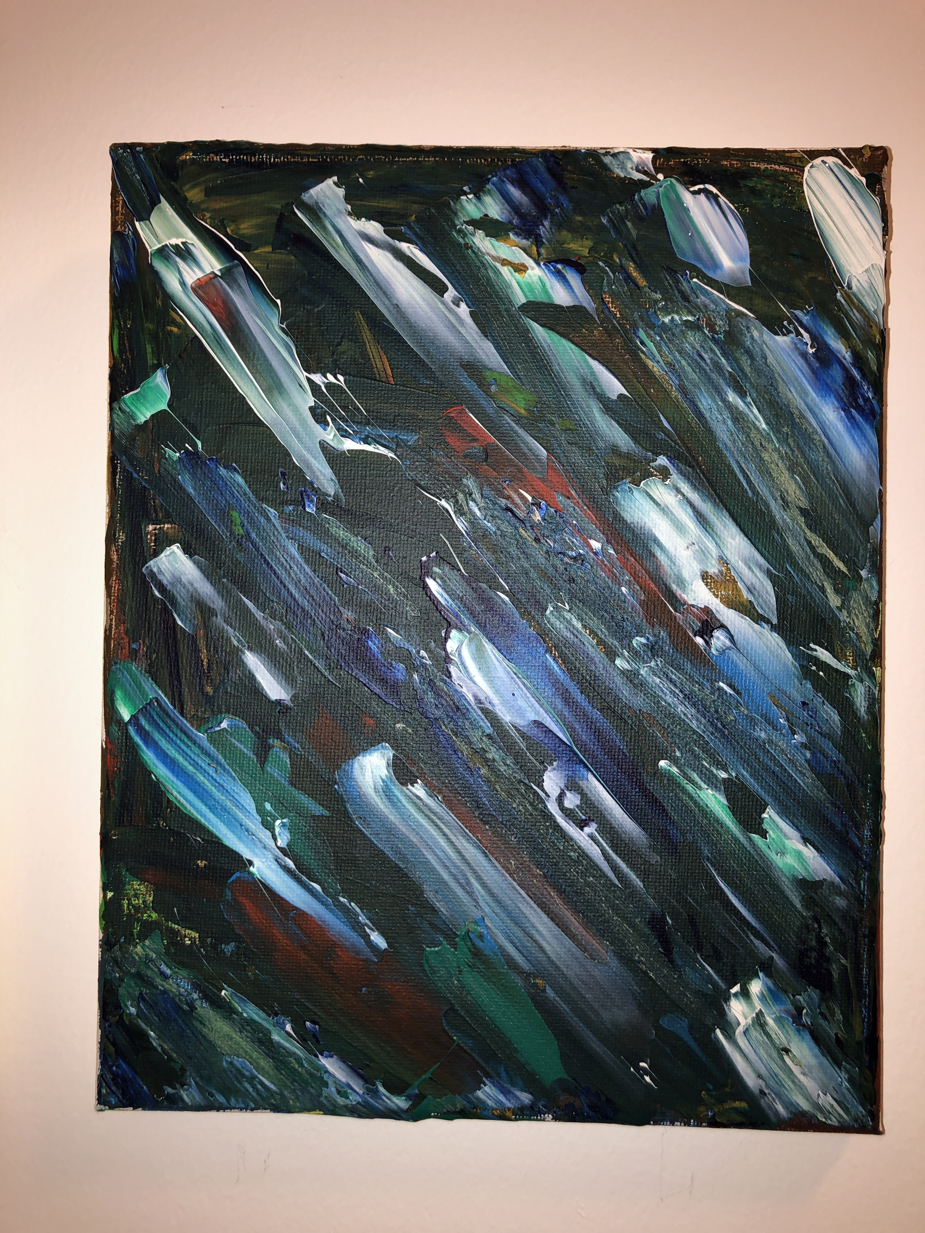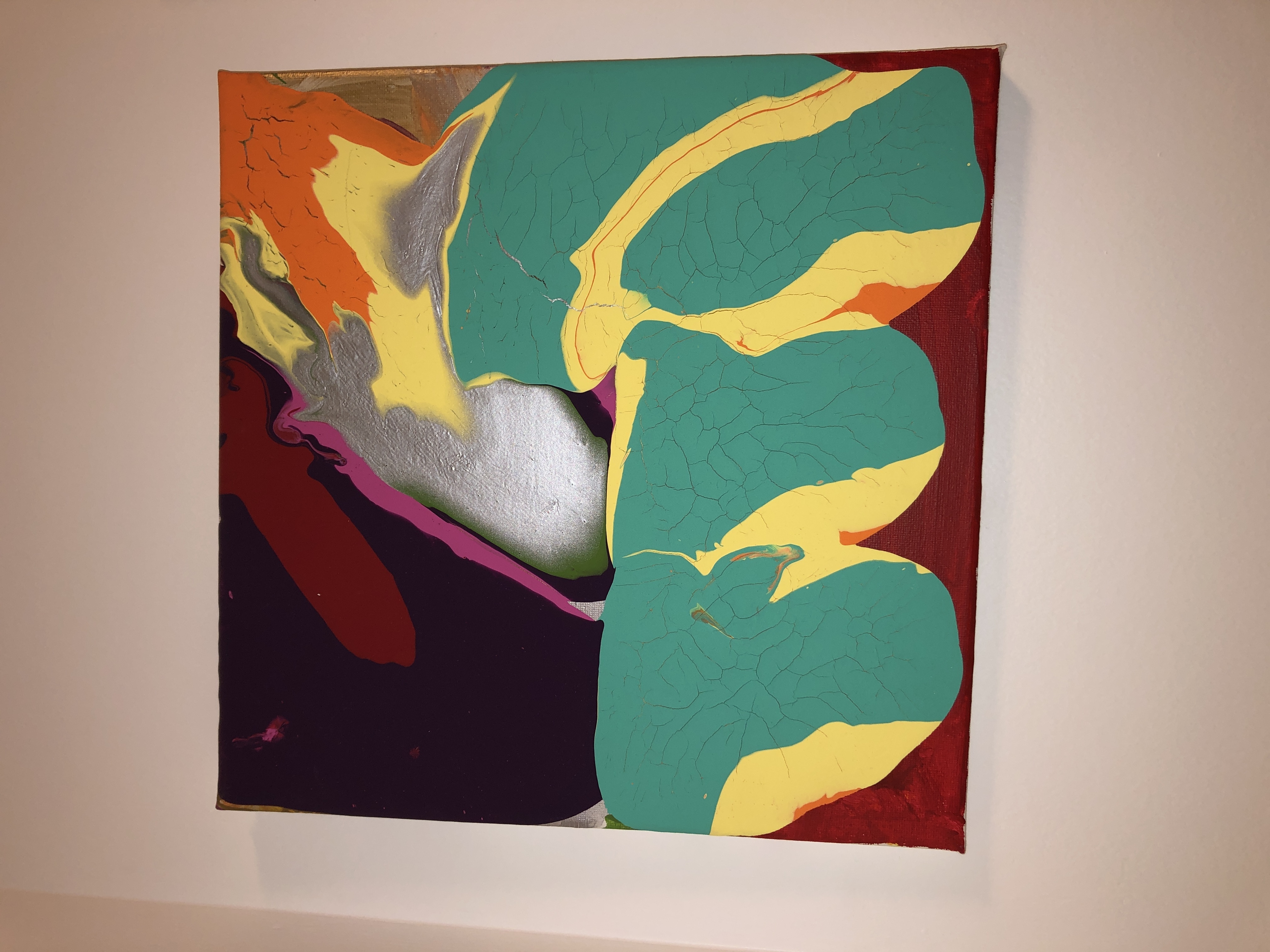 Making Tape stripes - second step is to put patterns of masking tape and begin colouring over them onto the black background. full size